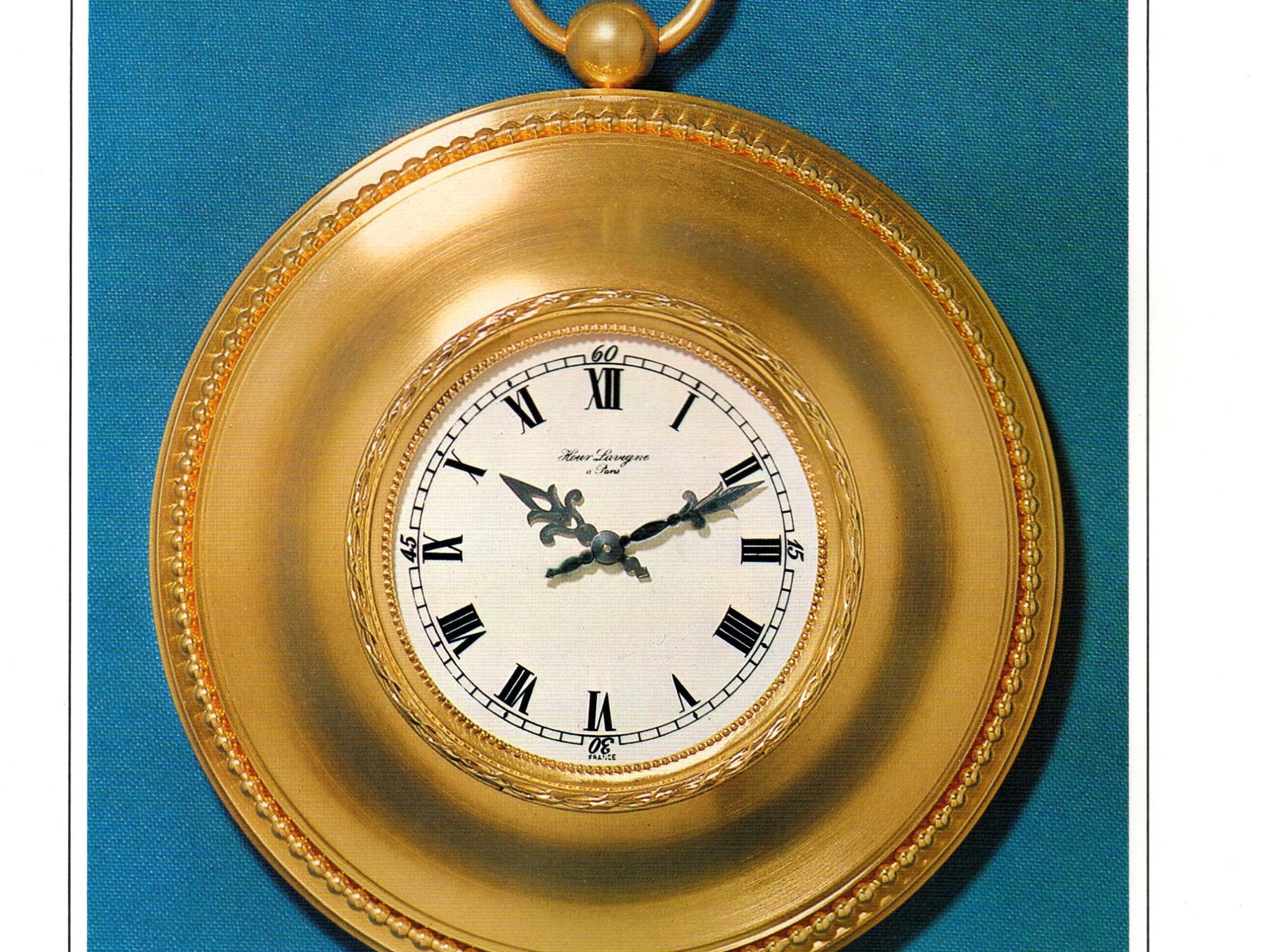 Horloge à suspendre , 70.1256 , bélière , chiffres romains , aiguilles noires , chemin de fer au pourtour sur cadran blanc numéroté jusqu’à 60 minutes , France en bas du cadran , quartz à pile LR6 , hauteur 23 cm .